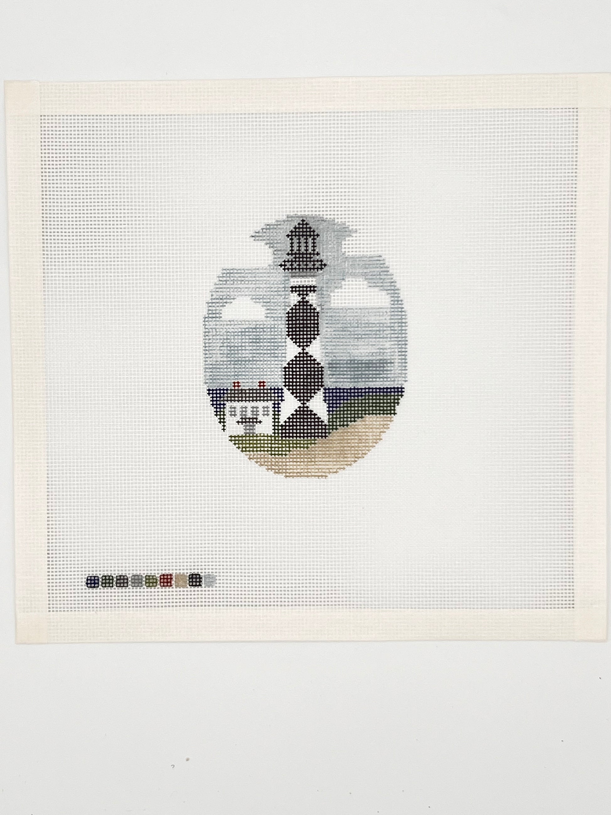 This one-of-a-kind, hand-painted canvas captures the charm of the Cape Lookout Lighthouse in an elegant oval ornament shape. Part of the North Carolina Lighthouse series, it offers a distinguished addition to any art collection or coastal décor.