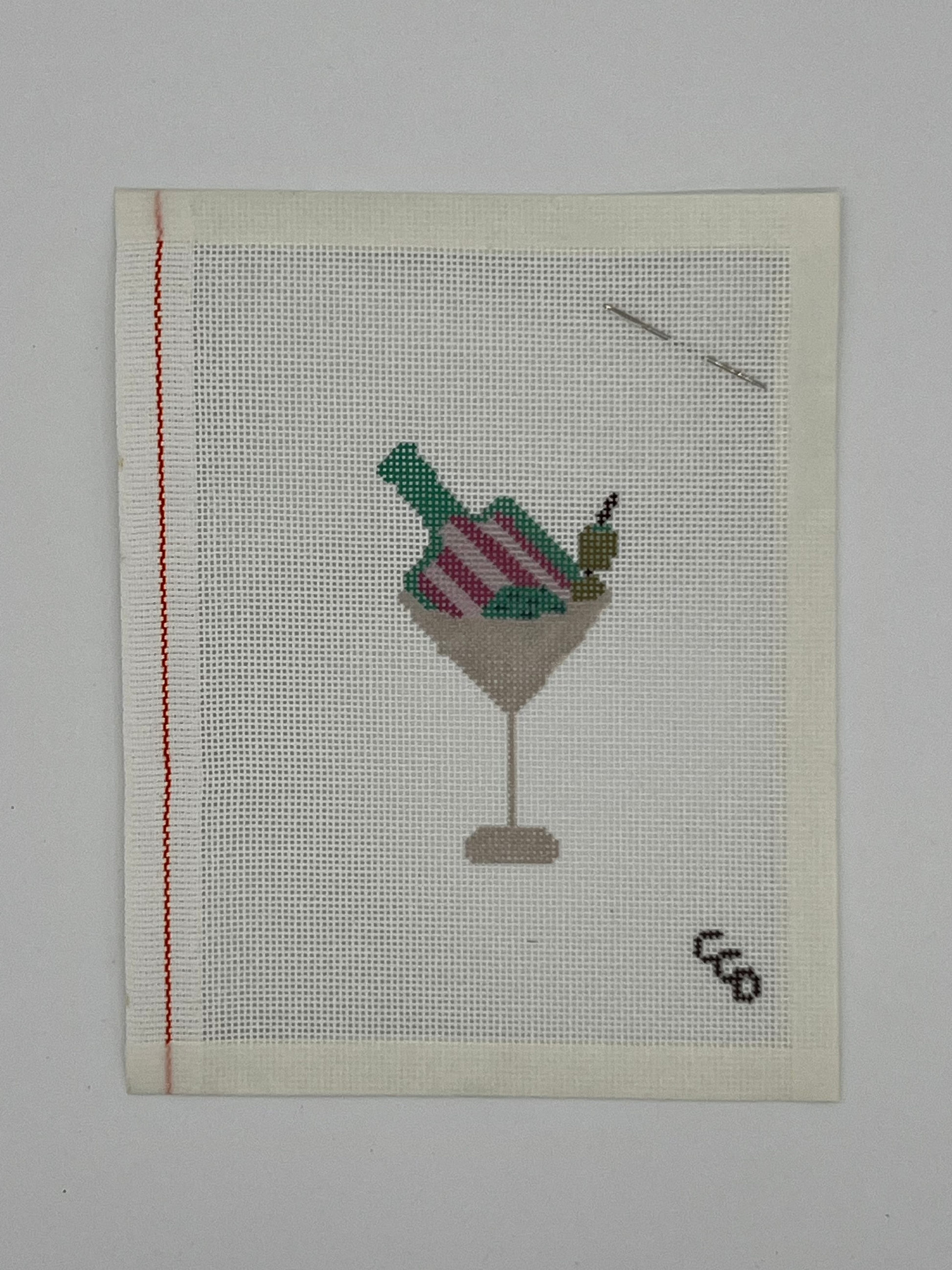 Hand-Painted Pickleball Martini Needlepoint Canvas | 3.5” Canvas | 18 Mesh Fun Cocktail Design
