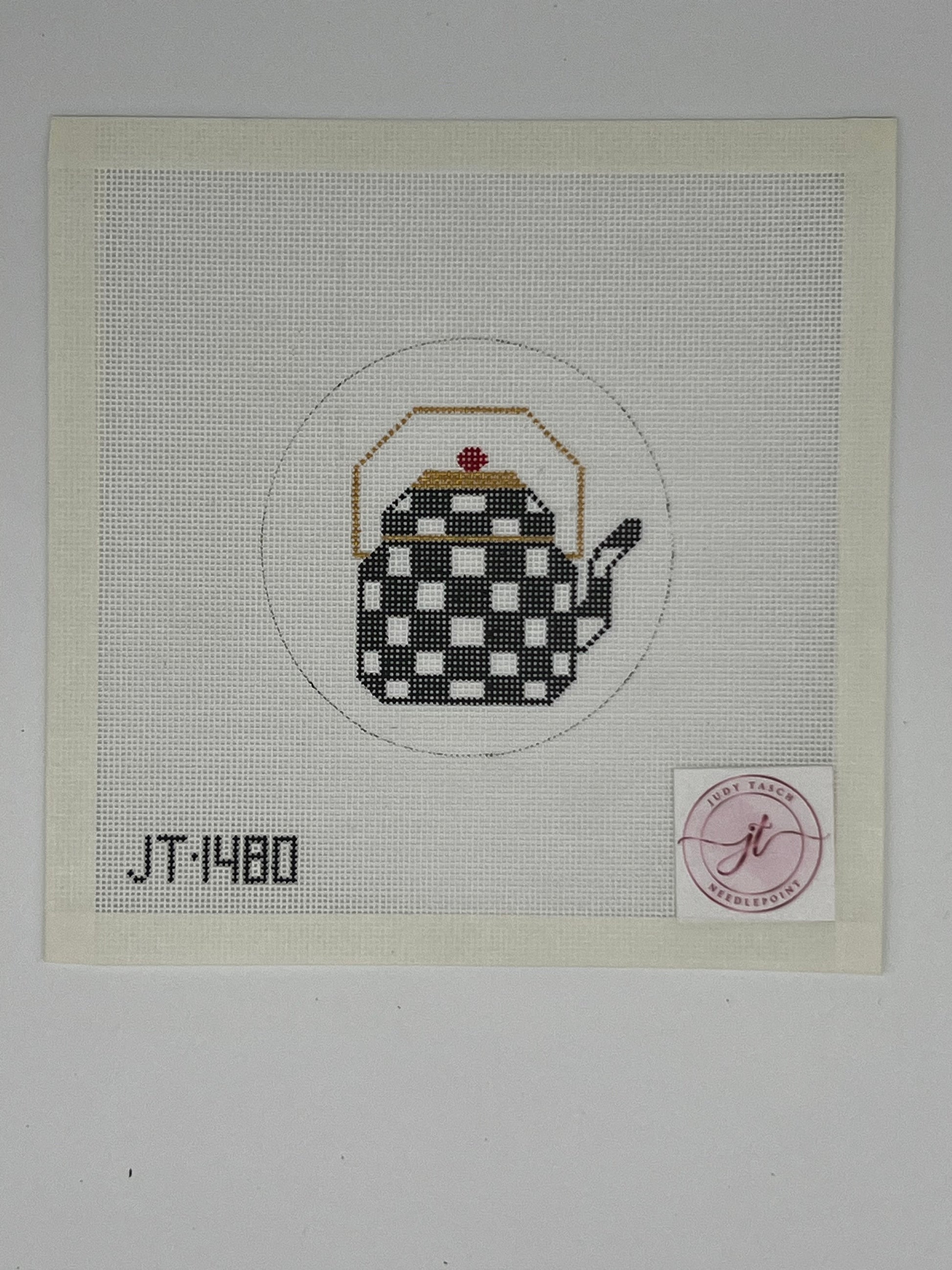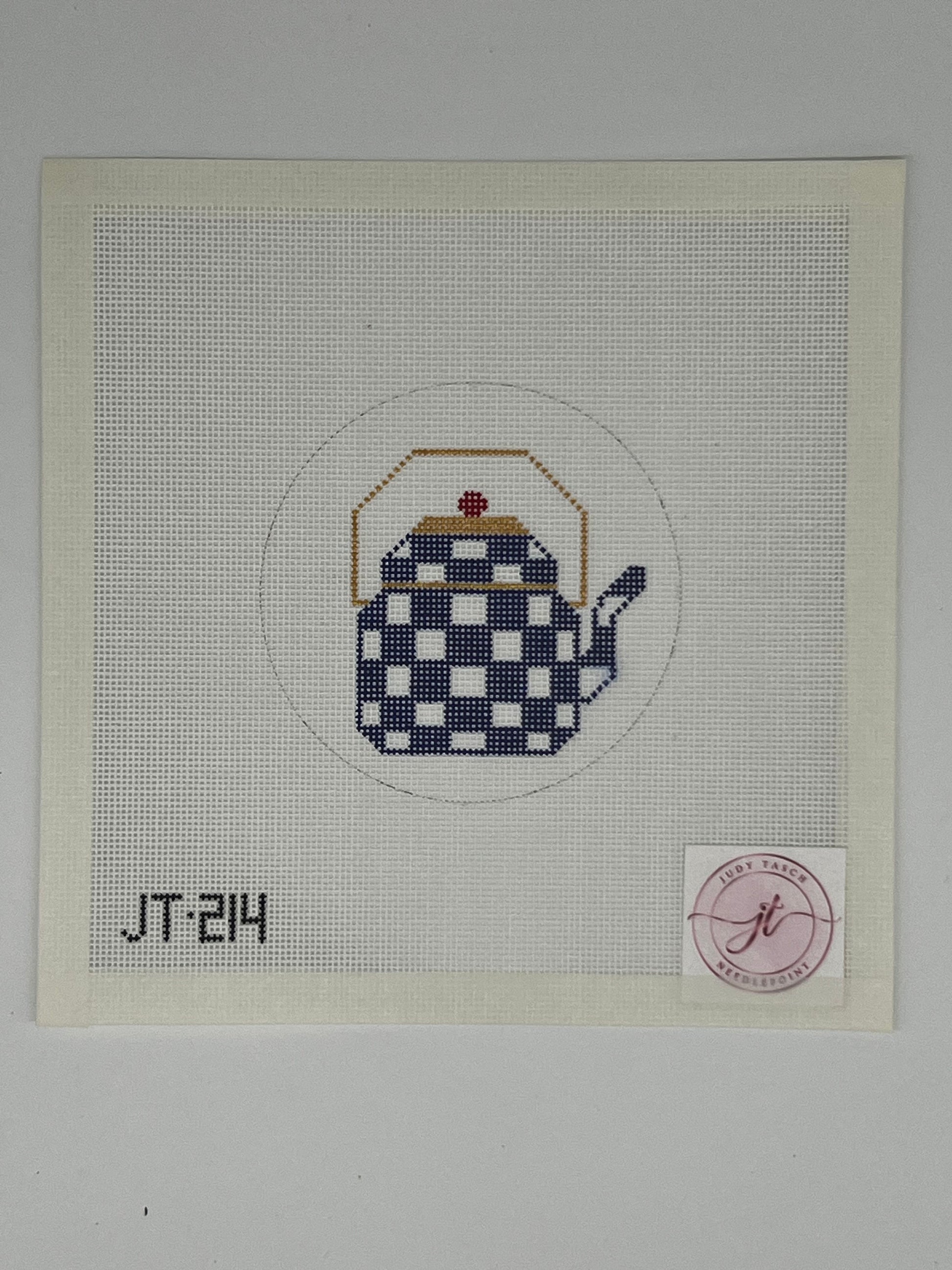 Add a whimsical touch to your décor with the Teapot Round ornament, inspired by Mackenzie-Childs style. Featuring a charming checkerboard pattern, it comes in two playful color options—classic black or vibrant blue—perfect for brightening any space with a dash of fun.