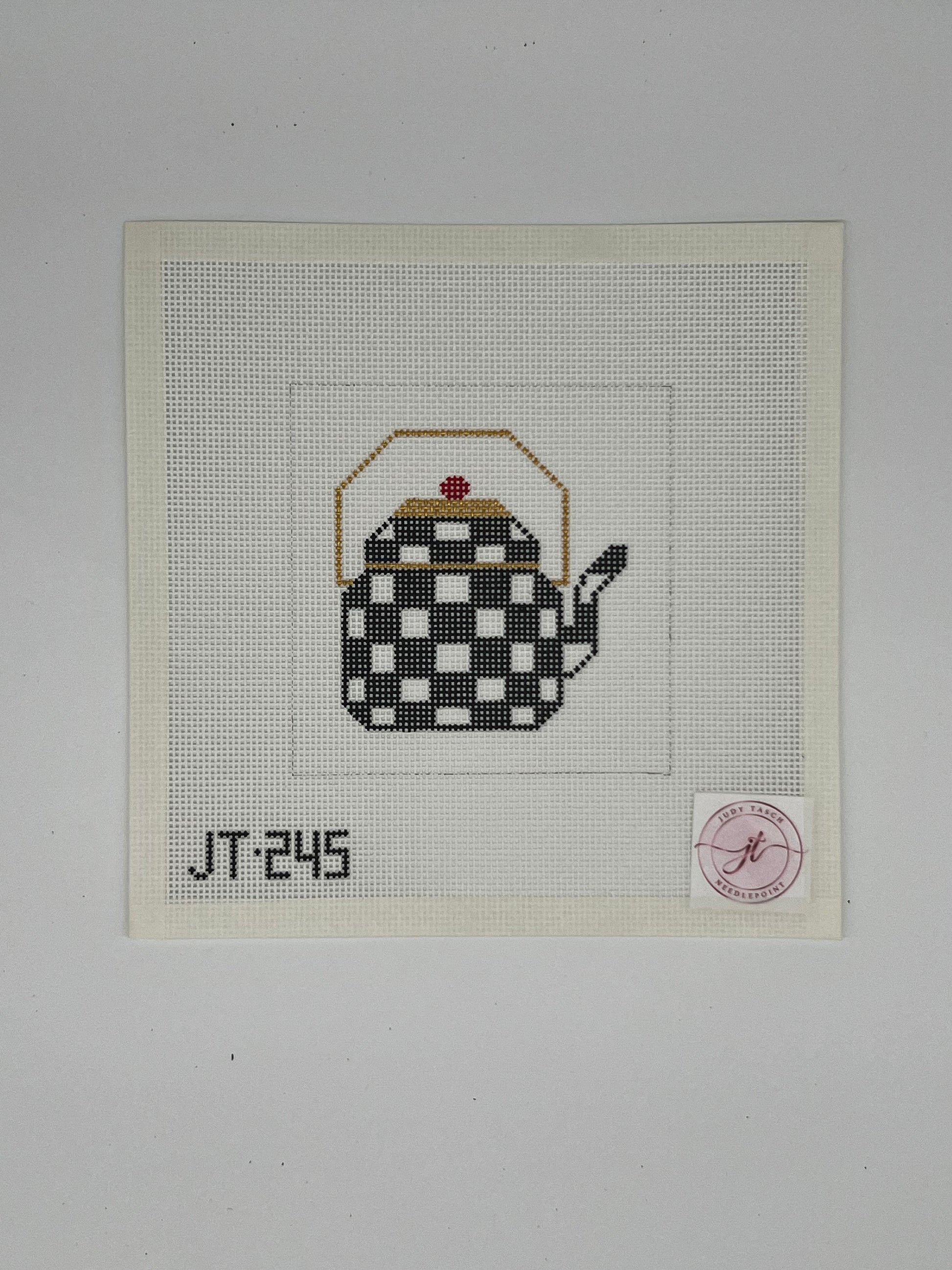 Add a whimsical touch to your décor with the Teapot Square, inspired by Mackenzie-Childs style. Featuring a charming checkerboard pattern, it comes in classic black perfect for brightening any space with a dash of fun.